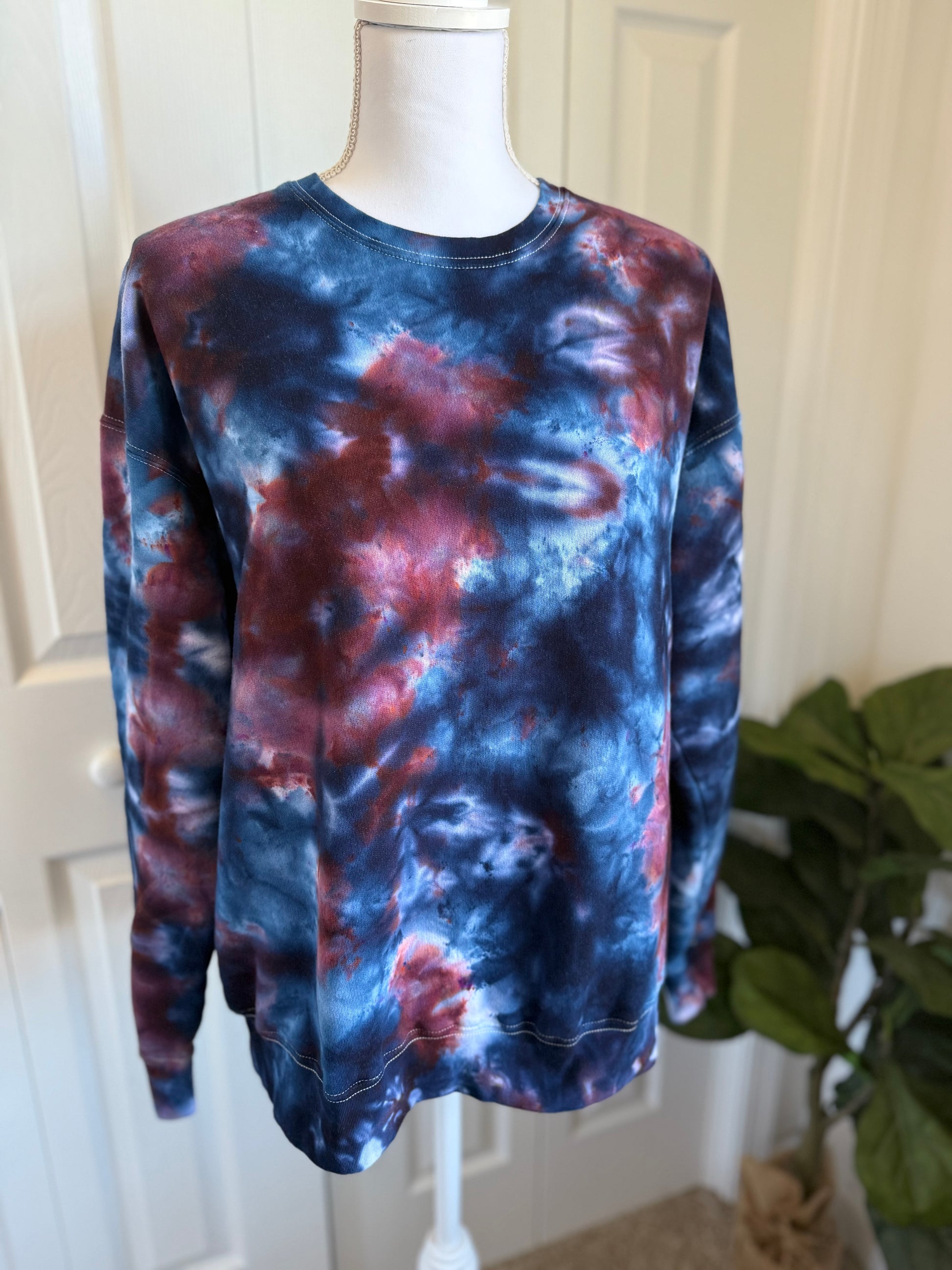 - Hand-dyed in house: Each item is hand dyed using a technique called ice dye, which creates unique patterns and colors.